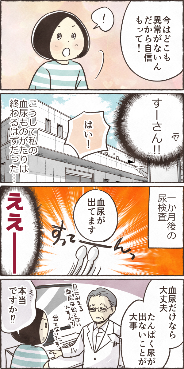 血尿とのお付き合いは続いていますが、これからも笑いながら経過観察していこうと思います!
