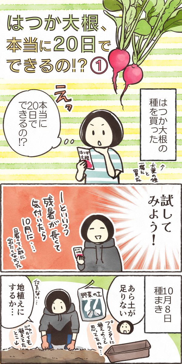 はつか大根、本当に20日でできるの!?① 絵日記 2025.11.05 はつか大根、20日でできるのか疑問に思って育ててみました。 さて、結果は…?②に続きます。 株式会社トーホク 赤丸はつかラディッシュ 01151358円(12/04 17:35時点)Amazon楽天市場Amazonの情報を掲載しています