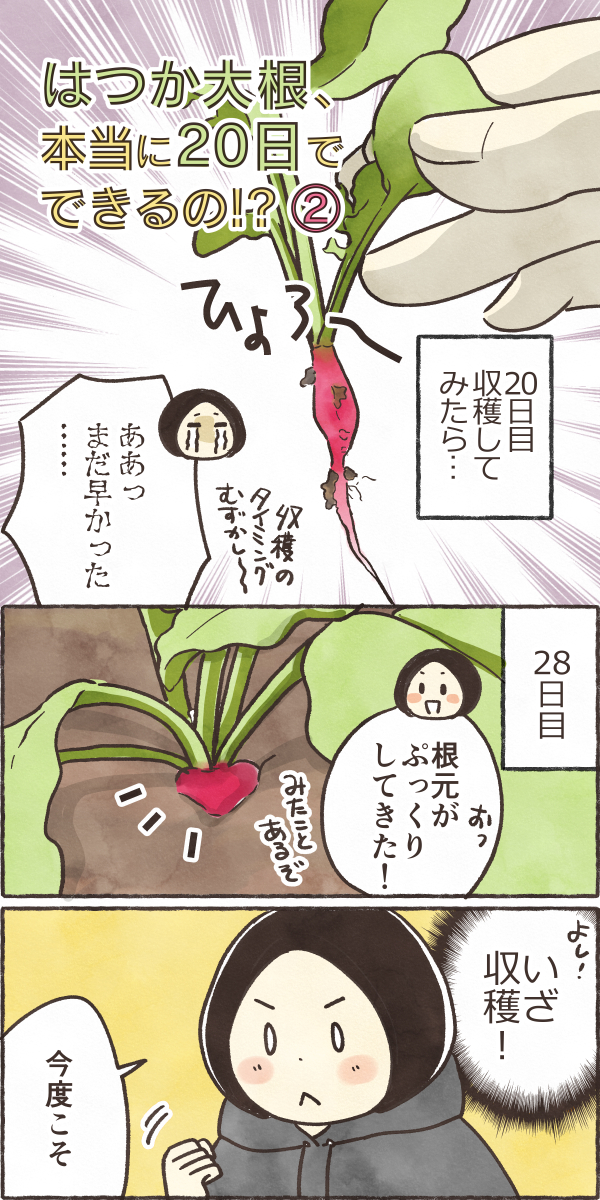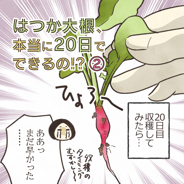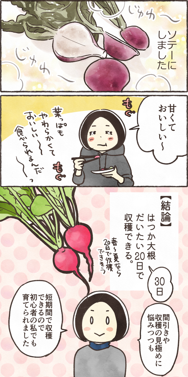 はつか大根、本当に20日でできるの!?② 絵日記 2025.11.07 ググってみて美味しそうだった、 ペットボトルでも栽培できるみたいなので挑戦してみたいです。 はつか大根、本当に20日でできるの!?①はつか大根、20日でできるのか疑問に思って育ててみま... 株式会社トーホク 赤丸はつかラディッシュ 01151358円(12/04 17:35時点)Amazon楽天市場Amazonの情報を掲載しています