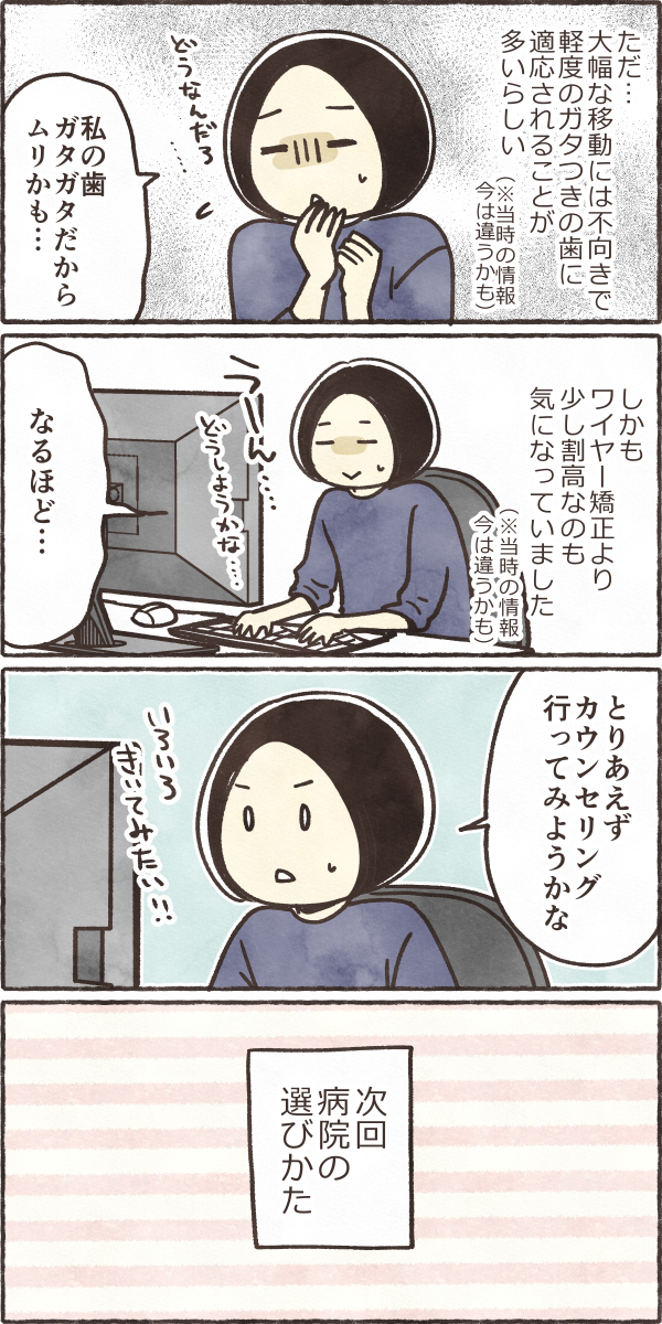 矯正を考えていた頃は、矯正日記や動画、矯正歯科のホー...