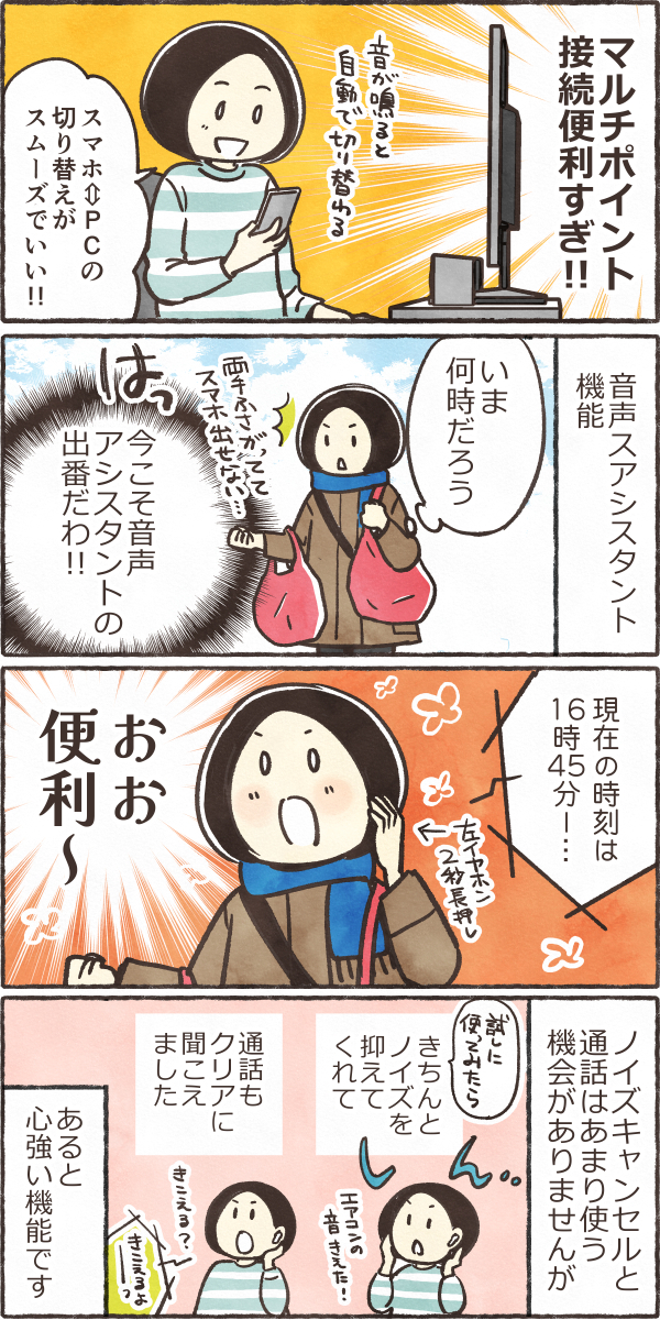 ノイズキャンセリングや通話機能は普段あまり使いませんが、